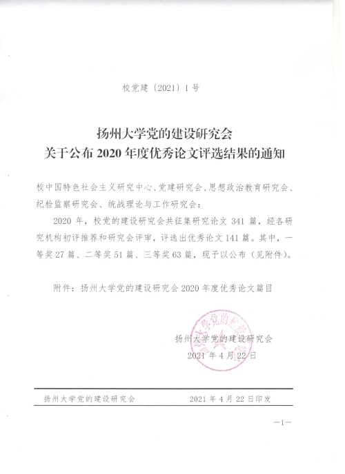 附件:扬州大学党的建设研究会2020年度优秀论文篇目.xlsx