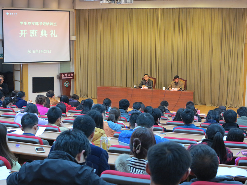 3月27日下午,校党校2015年学生党支部书记培训班在荷花池校区逸夫图书馆报告厅开班。校党委组织部负责同志为全校194名学生党支部书记作了题为《落实从严治党新要求,推进支部建设新常态》的报告。