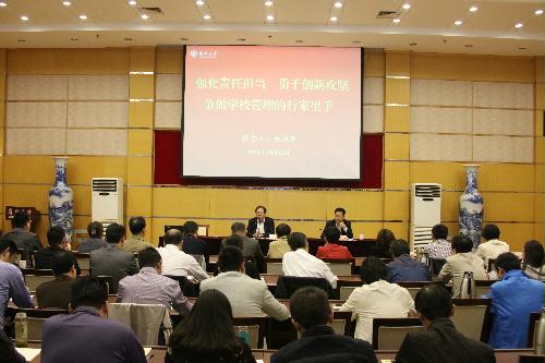 姚冠新强调,在学校全面开启“十三五”建设新征程,奋力冲击国家“双一流”的背景下,在学校全面开启建设国内一流、国际知名、特色鲜明的高水平研究型大学的关键期,学校的中层干部责任重大、使命光荣。