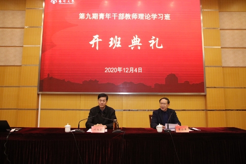 12月4日下午,学校在荷花池校区教学主楼二楼多功能厅举行第九期青年干部教师理论学习班开班典礼。校党委副书记、党校校长叶柏森出席开学典礼并讲话。