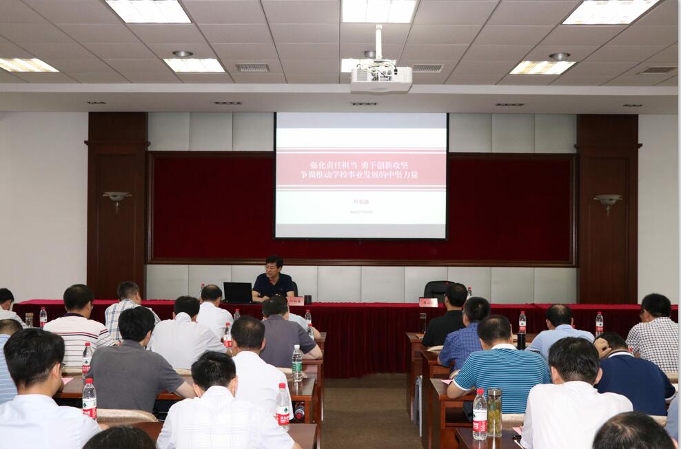7月30日上午,校党校在荷花池校区行政楼报告厅举办学院副职领导干部培训班专题培训。校党委副书记、校党校校长叶柏森作了题为“强化责任担当,勇于创新攻坚,争做推动学校事业发展的中坚力量”的专题讲座。校党委常委、组织部部长薛小平主持专题讲座。